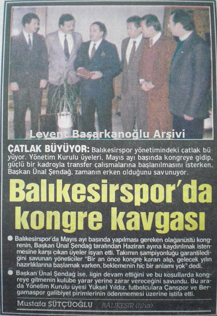 Balıkesirspor şampiyonluk yolunda emin adımlarla ilerlerken, maddi kriz ve yaklaşan kongre nedeniyle yönetimde de hareketli günler yaşanıyordu. Başkan Ünal Şendağ ile bir kısım yöneticiler arasında görüş ayrılığı yaşanmaya başlamıştı. İlk olarak, futbolculara söz verilen ödemelerin yapılamaması sonucu yönetim kurulu üyesi Yüksel Yıldız daha fazla dayanamamış ve istifa etmişti. Bununla birlikte, Mayıs ayı başında yapılması gereken olağanüstü kongre, takım şampiyonluğa giderken kulübe zarar vereceği gerekçesiyle başkan Ünal Şendağ tarafından Haziran ayına kaydırılmak istenmiş, ancak birçok yönetici bu duruma tepki göstererek yeni yönetimle birlikte güçlü bir yapnın oluşturulması gerektiğini ve beklemenin kulübe zarar vereceğini savunmuşlardı.