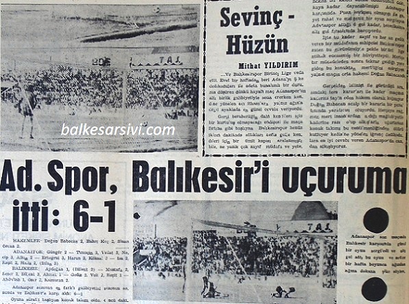 Adanaspor 6 - 1 Balıkesirspor Balıkesirspor 'un kurban edildiği gün. Hiçbir iddiası olmayan Adanaspor müthiş bir hırsla oynadığı maçta Bal-Kes'e 6 gol atıyor. Bal-Kes'li futbolcular maalesef aynı hırsı gösteremiyor. Adanaspor'lu futbolcular Beşiktaş'tan aldıkları paranın hakkını veriyor ve Beşiktaş kümede kalıyor. Adanaspor başkanı ertesi sene Beşiktaş yönetim kuruluna giriyor. Adanaspor'un milli futbolcusu İsa ÖZTÜRK bu maçtan yıllar sonra maç öncesi kendilerine bazı haplar içirildiğinden bahsediyor. Doping ilacı olsa gerek.. 30.05.1976
