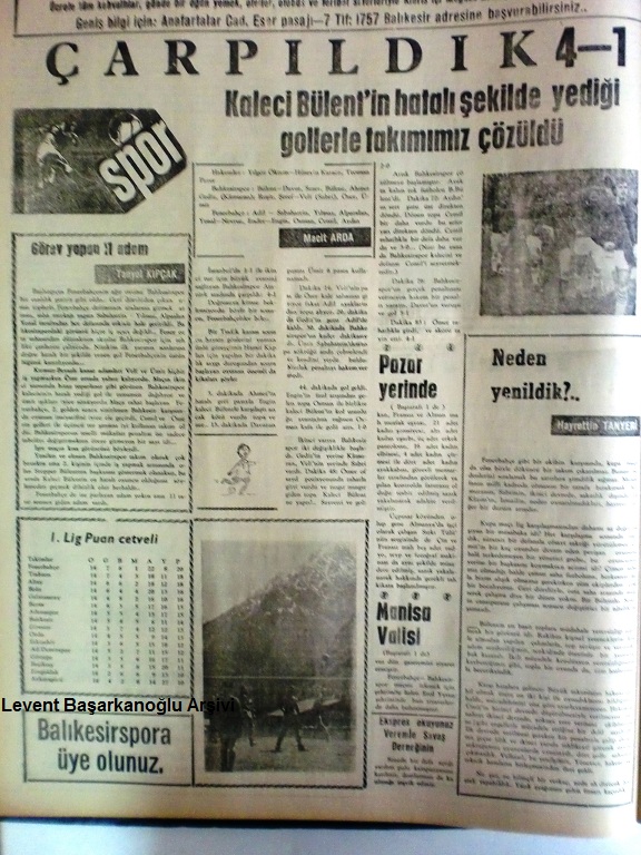 Balıkesirspor 1 - 1 Beşiktaş 07.09.1975 (Milliyet Gazetesi arşivi)