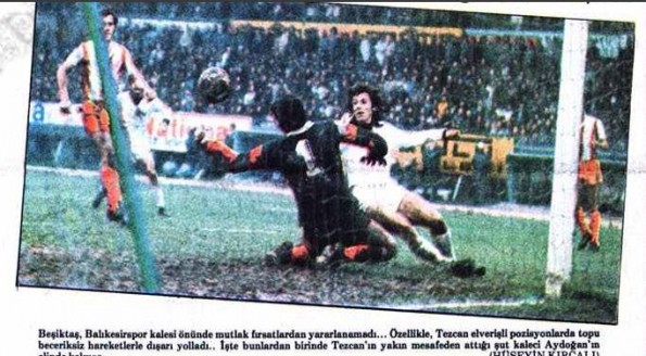 Beşiktaş 1 - 0 Balıkesirspor 15.02.1976 Soldaki fotoğrafta Bülent'in kendi kalesine attığı gol.. (Milliyet Gazetesi arşivi)