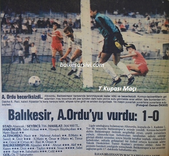 Vefa Simtel 3 - 2 Balıkesirspor 03.12.1983 (Milliyet Gazetesi arşivi)