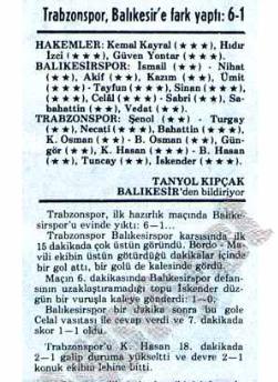 Balıkesirspor 1 - 6 Trabzonspor Trabzonspor'un fırtına gibi estiği yıllarda yaptığımız bir hazırlık maçı. 31.07.1983 (Milliyet Gazetesi arşivi)